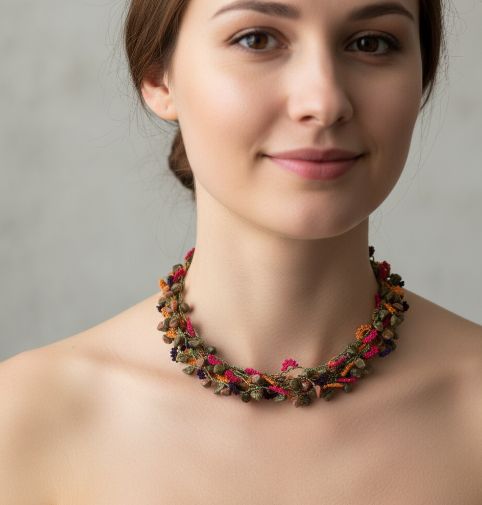 KOLYE, el yapımı bir sanat eseridir. Geleneksel tığ işi tekniği ile özenle