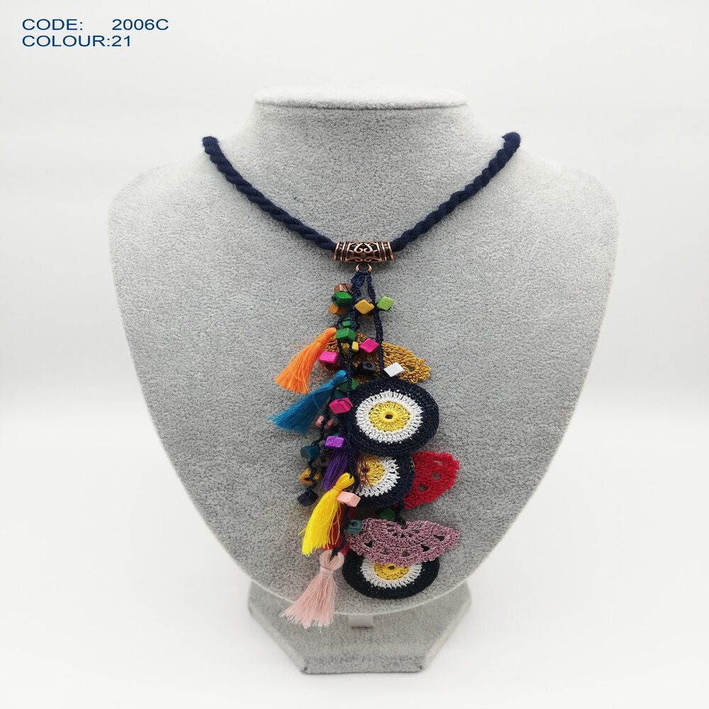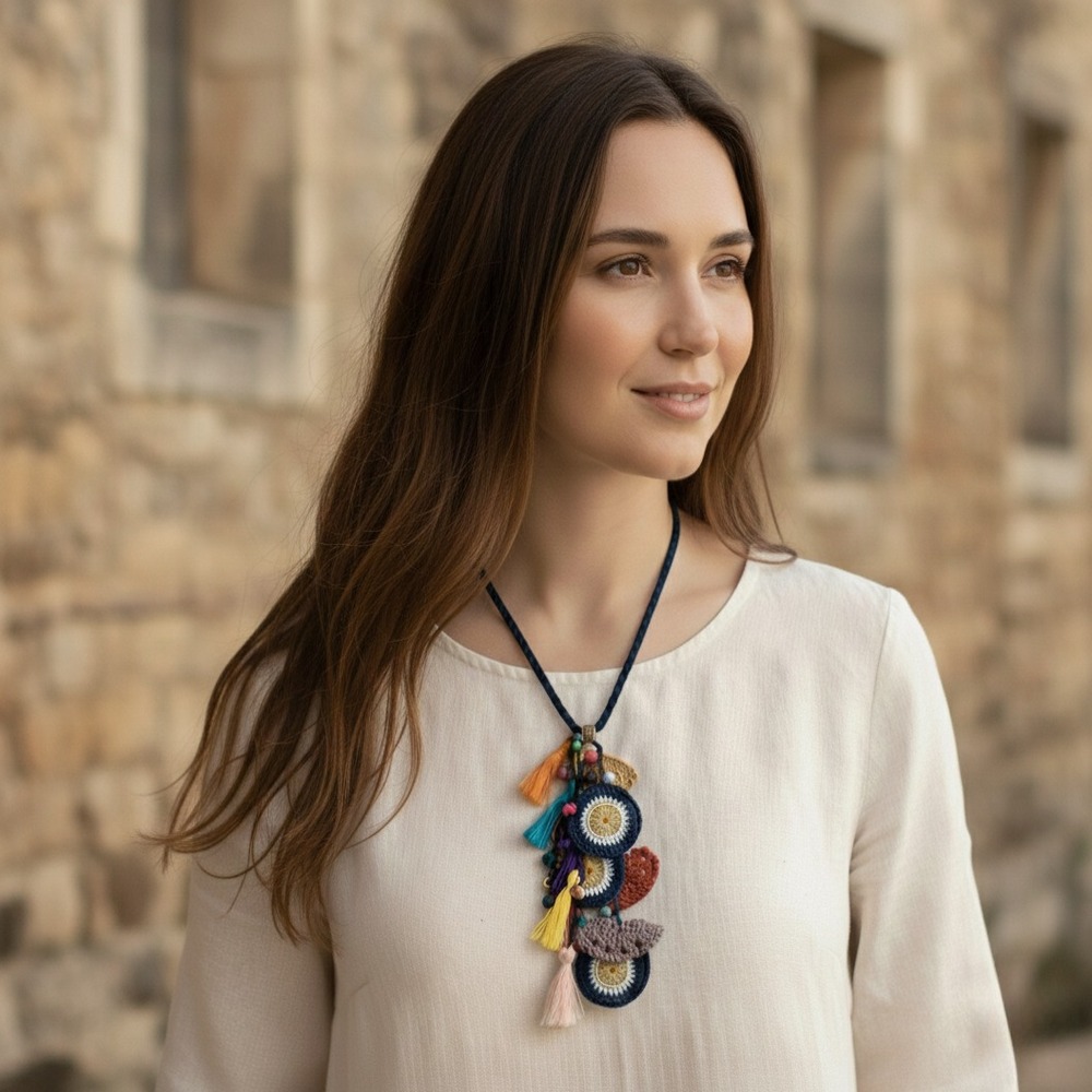 Kendinizi şımartın veya sevdiklerinize unutulmaz bir hediye verin! El Yapımı Tığ İşi Saçaklı Kolye ile tarzınızı ortaya koyun.