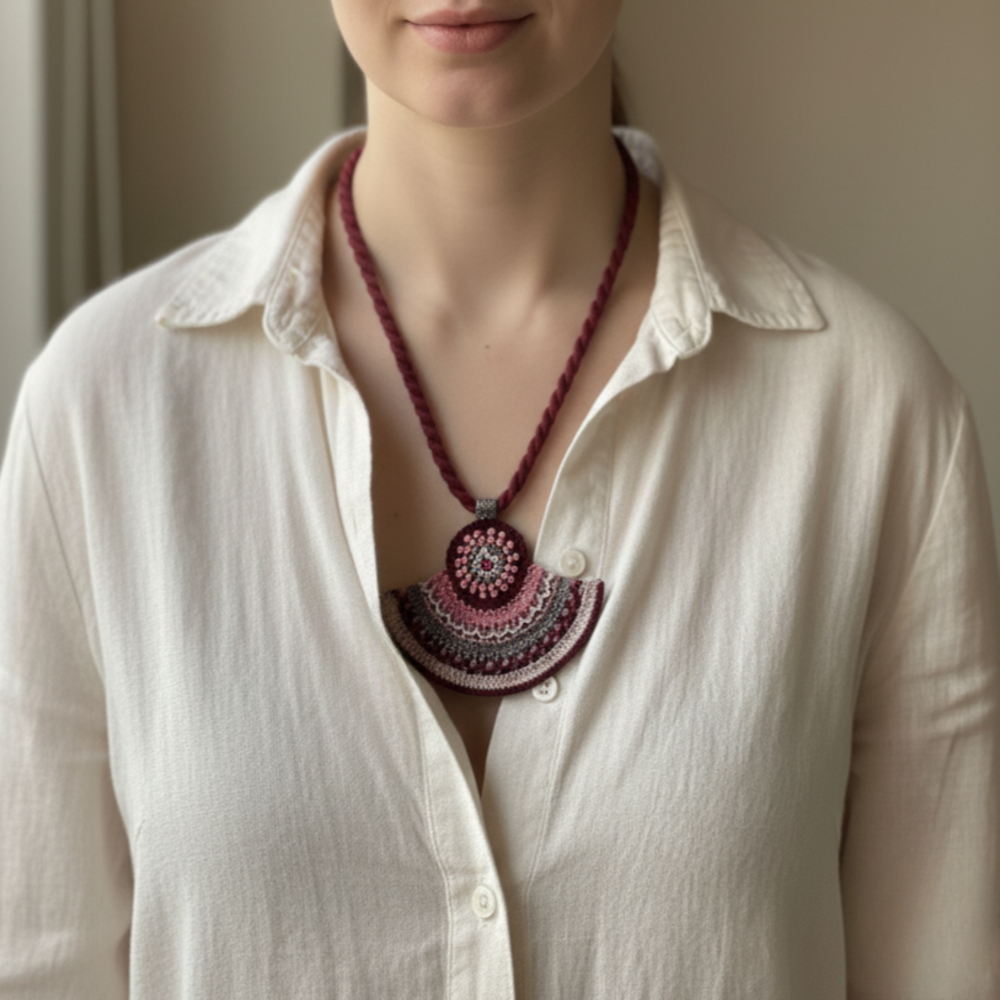 El Yapımı Tığ İşi Madalyon Kolye