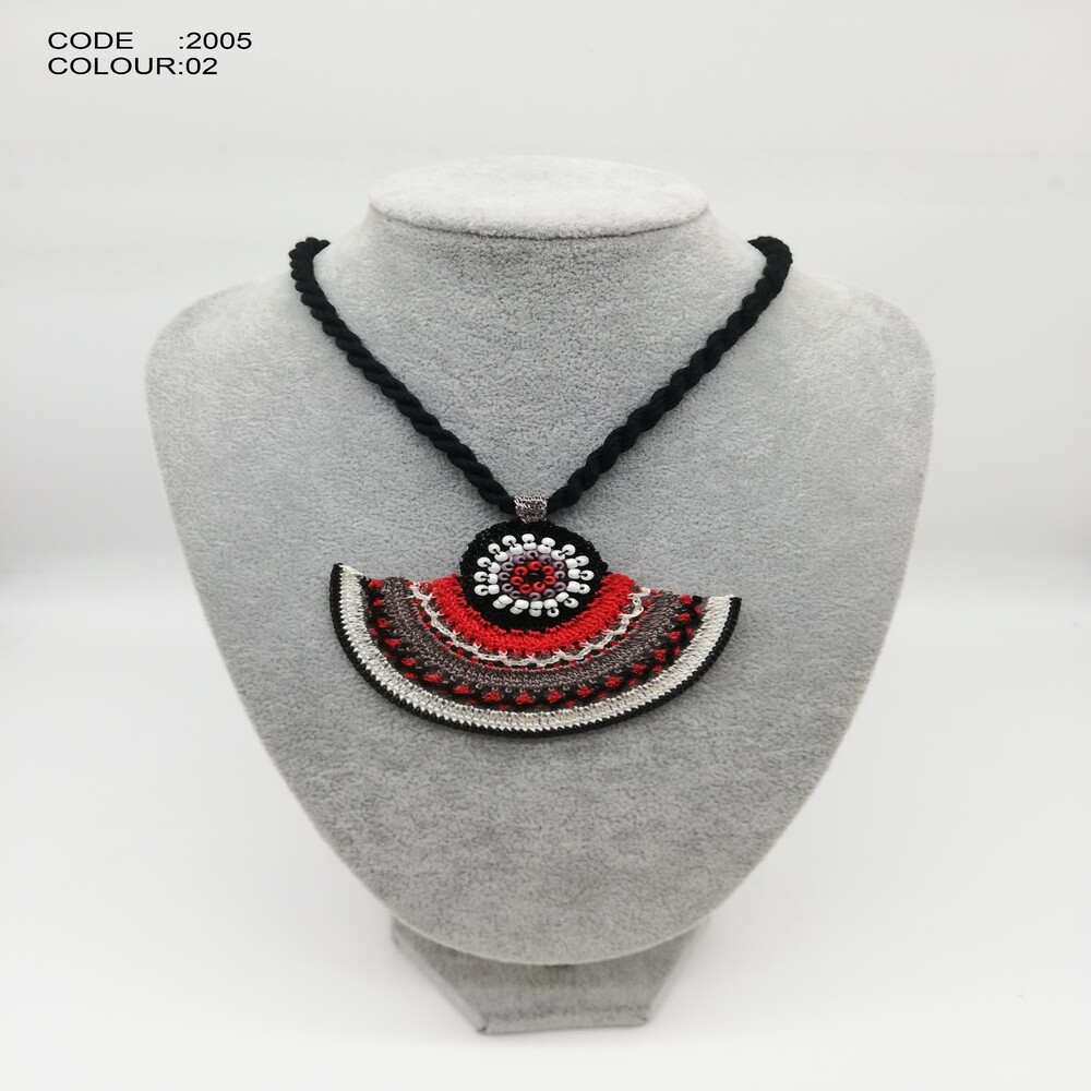 Bu kolye, göz alıcı madalyon formu sayesinde her açıdan dikkatleri üzerine çekiyor. Tasarımında kullanılan tığ işi tekniği, geleneksel el işçiliğini modern bir dille yorumluyor. Her bir madalyon, ustalıkla örülerek  detaylar ile süslenmiştir. Bu sayede kolye, vintage ve modern unsurları bir arada barındırarak, farklı stillerle kombinlenebilme imkanı sunuyor.