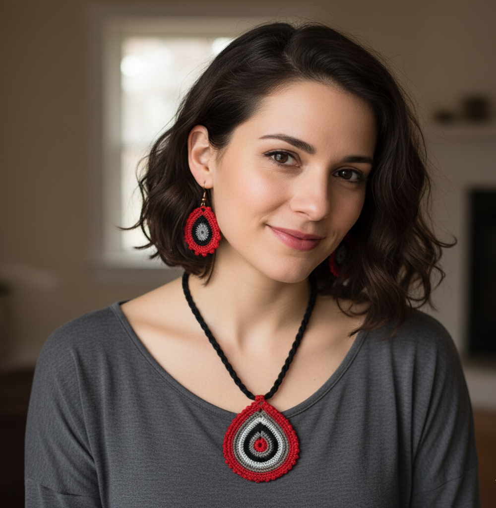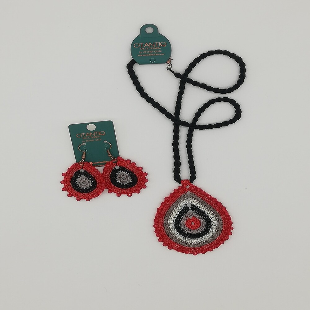 El Yapımı Tığ İşi Kolye Küpe Takım
