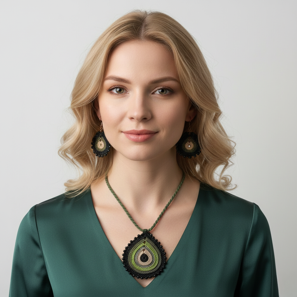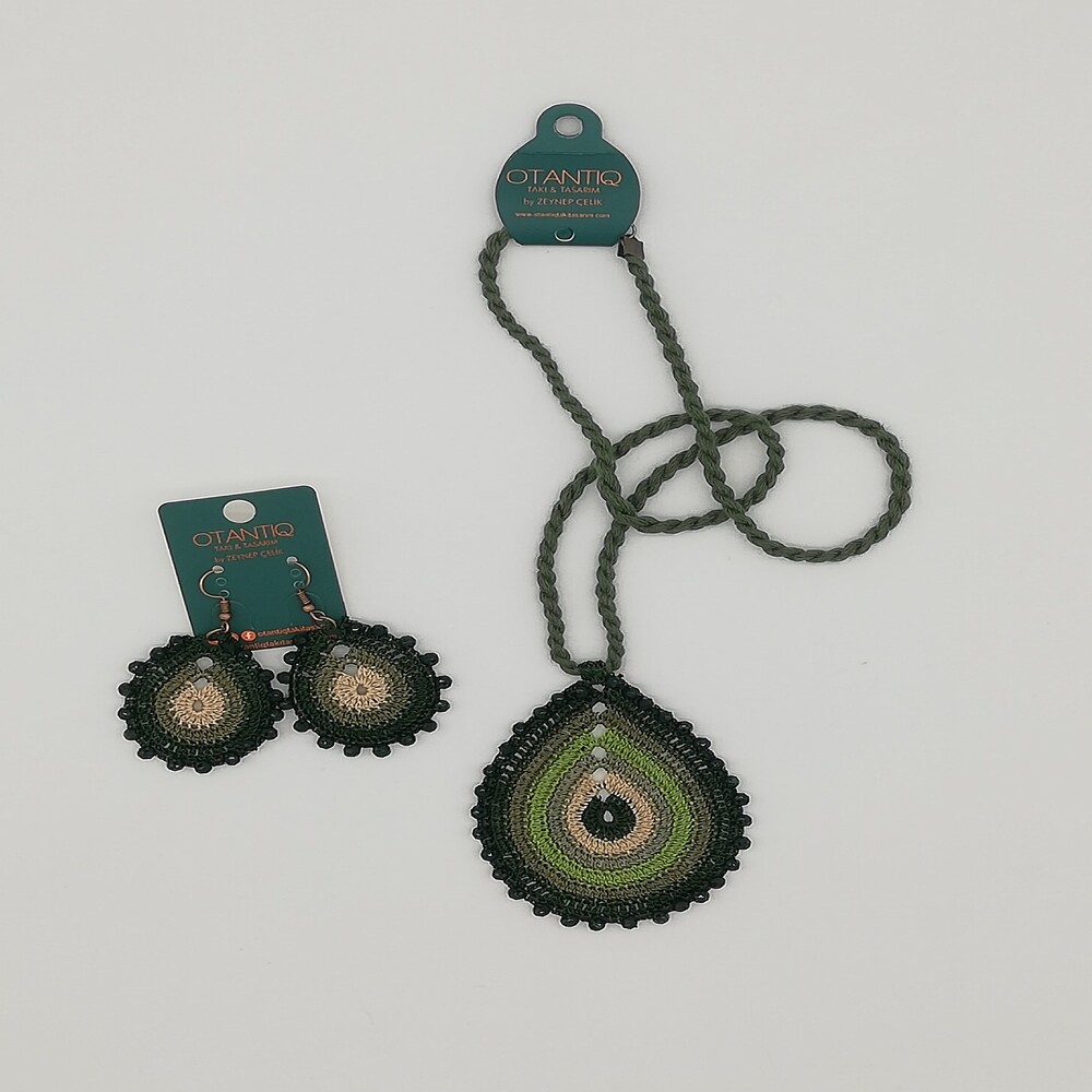 El Yapımı Tığ İşi Kolye Küpe Takım