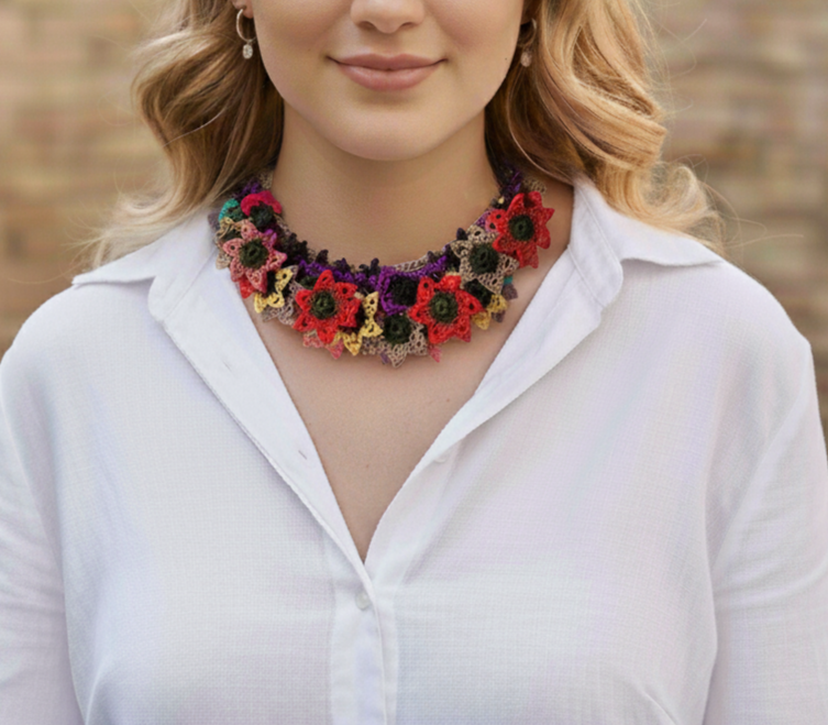 Şıklığı ve zarafeti bir arada sunan el yapımı örgü kolye, her kadının aksesuar koleksiyonuna renk katmaya hazır. Bu özel tasarım kolye, tamamen elde örülerek yapılmış olup, özgünlüğü ve kalitesi ile dikkat çekmektedir. Modern ve bohem tarzın buluştuğu bu kolye, günlük kullanım için ideal bir seçenek olduğu gibi, özel davetlerde de şıklığınızı tamamlayacak harika bir aksesuardır.