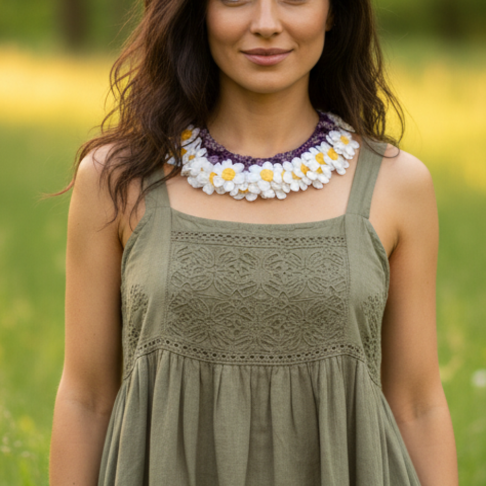 Şıklığı ve zarafeti bir arada sunan el yapımı örgü kolye, her kadının aksesuar koleksiyonuna renk katmaya hazır. Bu özel tasarım kolye, tamamen elde örülerek yapılmış olup, özgünlüğü ve kalitesi ile dikkat çekmektedir. Modern ve bohem tarzın buluştuğu bu kolye, günlük kullanım için ideal bir seçenek olduğu gibi, özel davetlerde de şıklığınızı tamamlayacak harika bir aksesuardır.